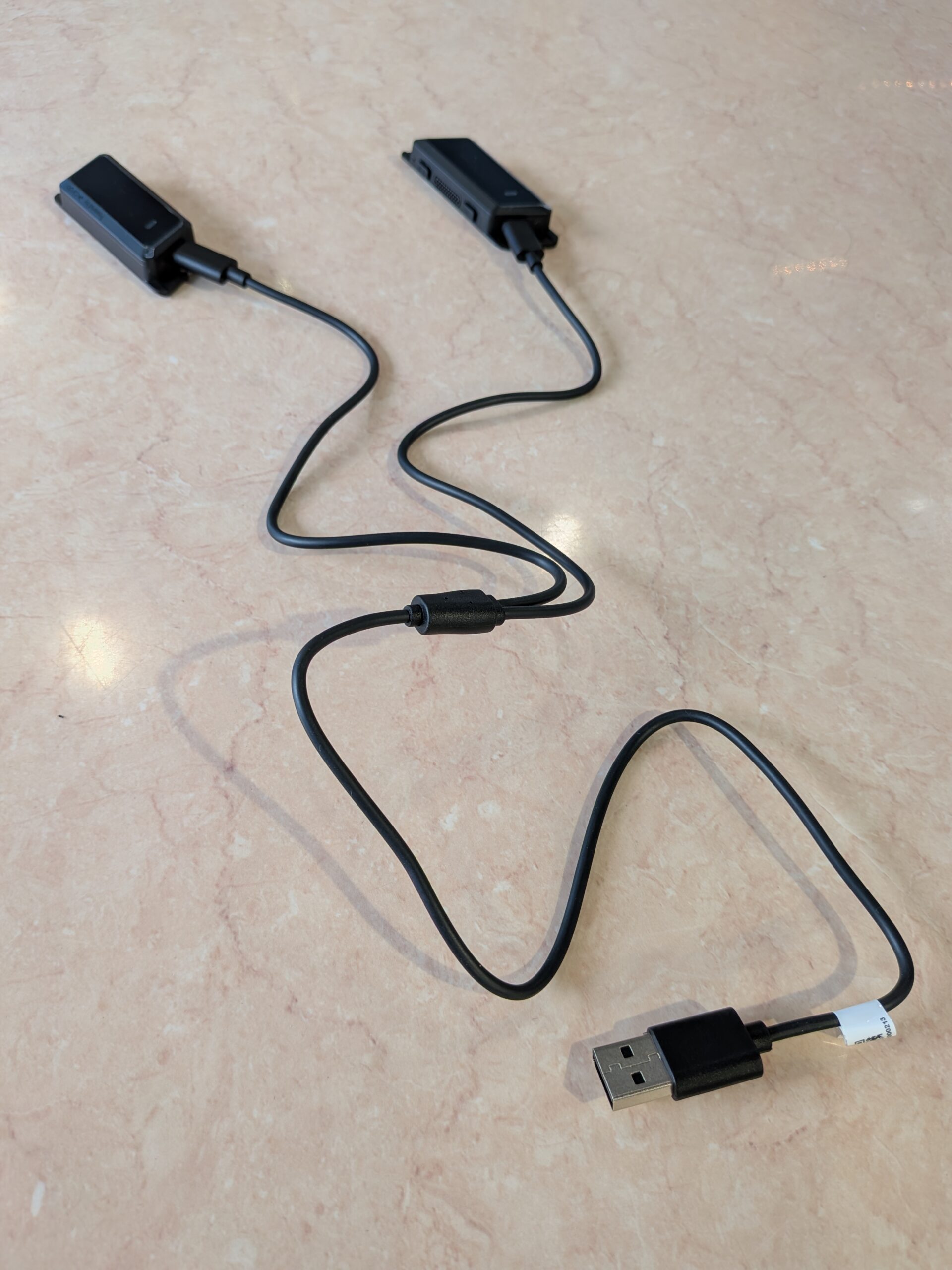 左右が独立した仕様の本体に対して、二股に分かれた充電ケーブルで